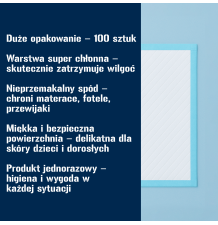 Zwierzęta to członkowie rodziny, dlatego warto zadbać o ich komfort i higienę. W ofercie znajdziesz szeroki wybór podkładów higienicznych – w różnych rozmiarach (M 45x60, L 60x60, XL 60x90) i ilościach (50–100 sztuk). To niezbędne akcesoria dla szczeniąt, starszych psów i kotów.